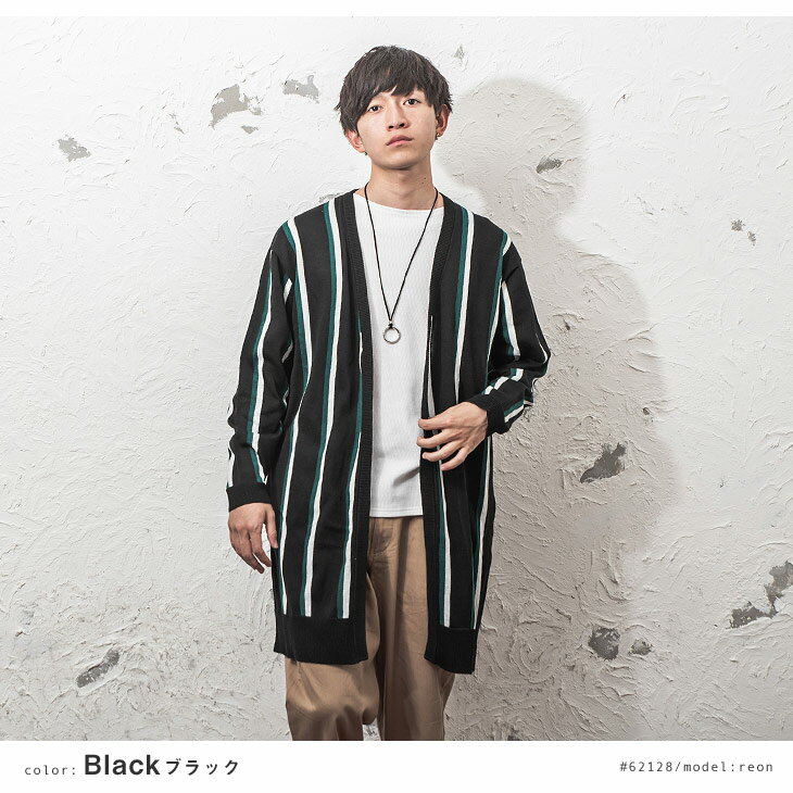 ロングカーディガン メンズ コーディガン カーディガン ロング カーディガン 薄手 ロングカーディガン 麻 長袖 ストライプ 生地 マルチストライプ ロング丈 韓国 ファッション 春服 春 夏服 春夏 モード系