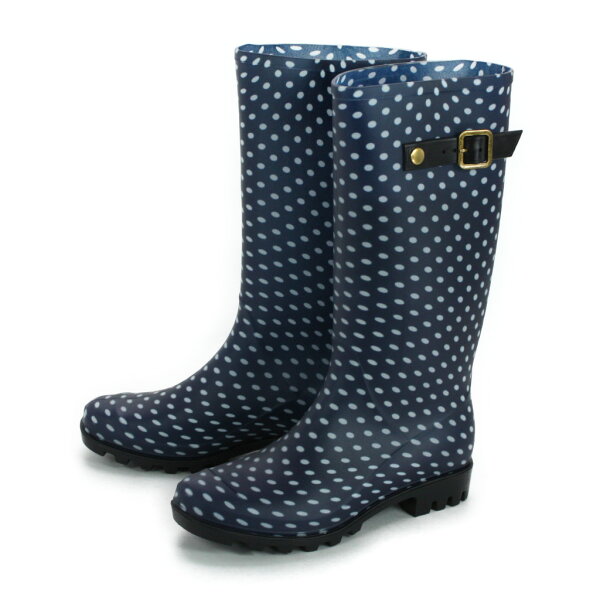 歩きやすく 疲れにくい レインブーツ POPなチェック柄/ドット柄が可愛い ジョッキータイプ レインブーツ 蒸れ防止素材使用、柔軟な天然ゴムを多く使用、ブロックヒール仕様 だから歩きやすく疲れにくい!